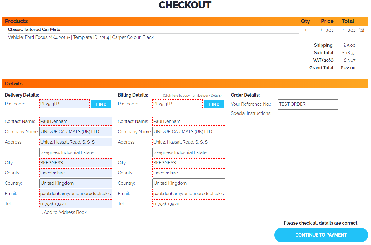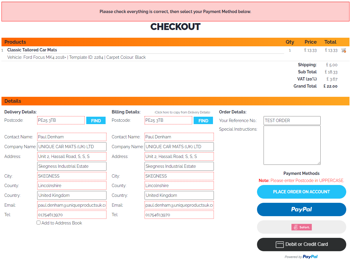 Note: Please take note of the Order Reference number and include this with any correspondence with ourselves in regards to this order.